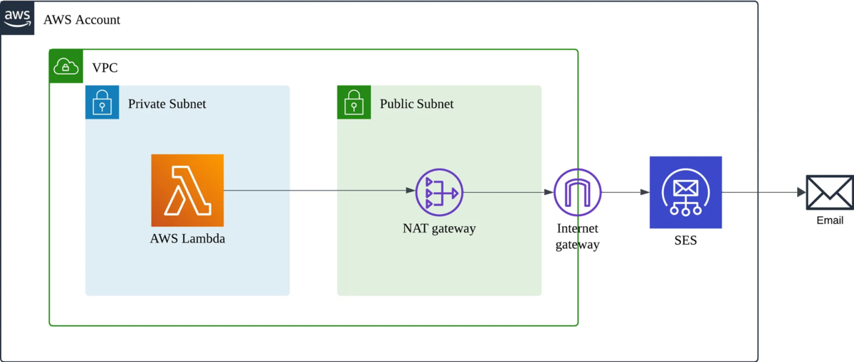 本記事では以下の構成でlambda関数からSESを呼び出します。
